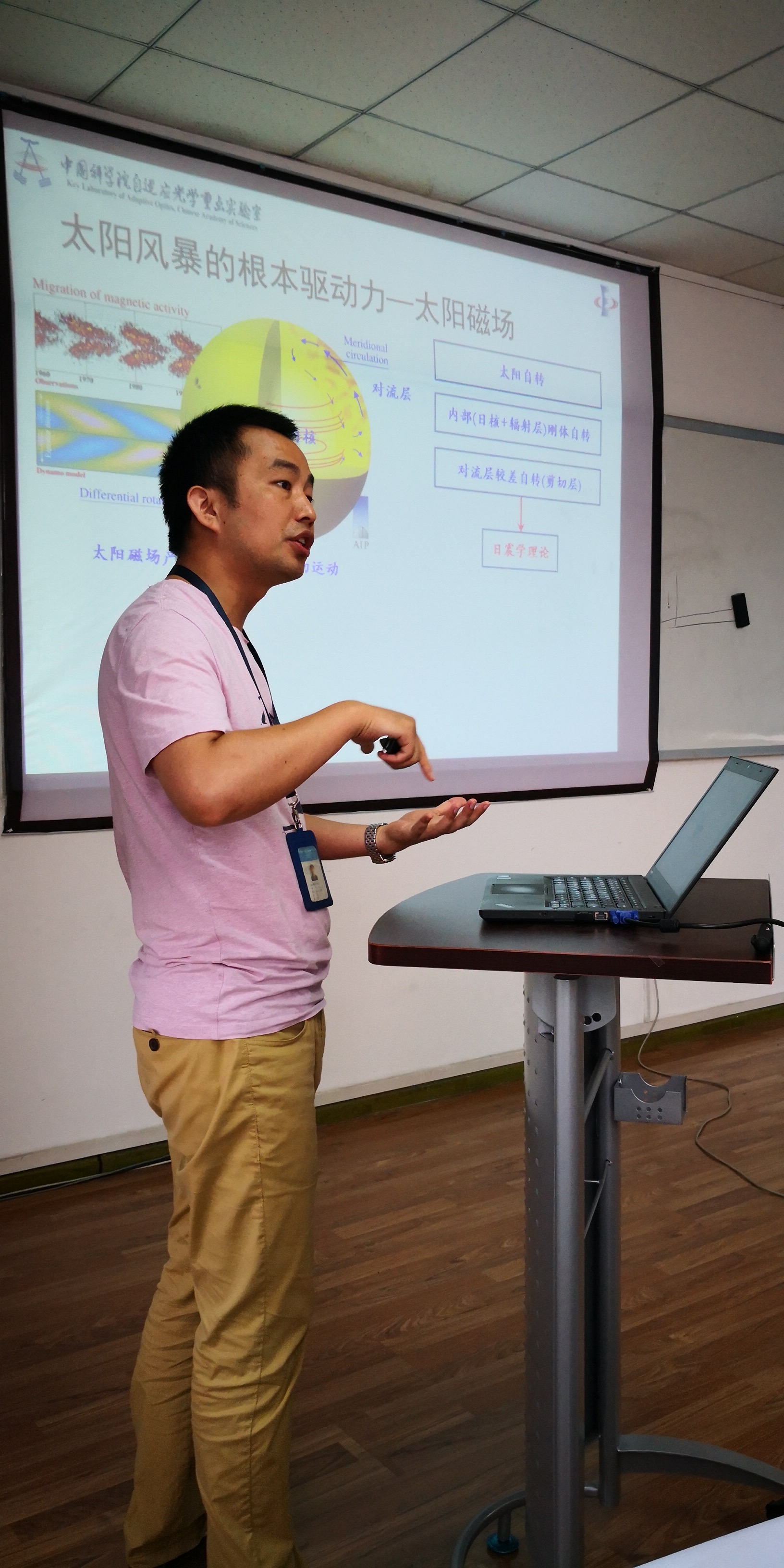 按照拟定的实习计划,研究生部向银辉老师简洁的欢迎致辞后,随即介绍了我所具有重大显示度的科研工作和研究生教育概况。八室张兰强博士作了题为“太阳高分辨力层析成像与空间天气预报”的科普报告,一室王强研究员作了“星地量子通信及光学地面站”报告。报告在同学中引起热烈反响,加深了对光电所的认识和仰慕。同学们最后在吴永前博士带领下参观了先进光学制造中心,初步了解我所在先进光学制造与检测技术方面的重要进展。