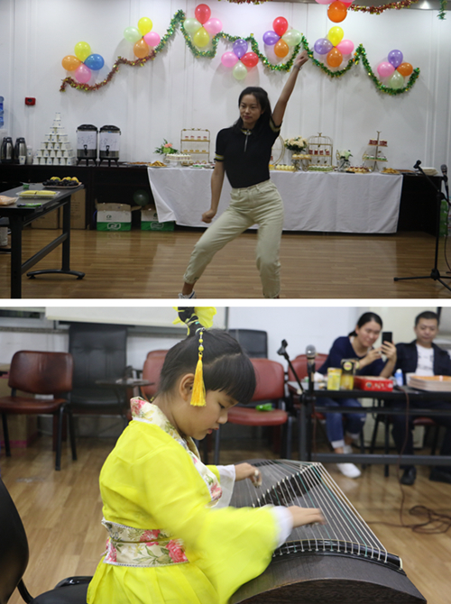 同学们以所为单位一一进行自我介绍,其间穿插表演了丰富多彩,形式多样的节目:有舞蹈,歌曲,小品,古筝、口琴等,给大家带来了一场不一样的视听盛宴。舞蹈《Hit the ground running》节奏强劲,充满了动感和青春活力;口琴演奏《等你下课》旋律悠扬美妙;听力授课老师余老师女儿丰年小朋友还为同学们带来了古筝演奏《战台风》,小小的身体里有巨大的能量,让所有人赞叹不已;还有爆笑的小品表演《打扑克》,藏语歌曲《仓央嘉措情歌》,粤语歌曲《17岁》,以及吉他弹唱《这个年纪》等等,精彩不断,令人眼花缭乱,同学们尽情展示各自的才艺。紧张刺激的游戏互动环节穿插节目之间,更是点燃了同学们的热情和活力。
