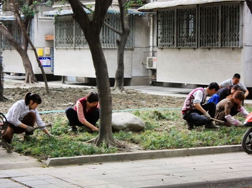 通过对植物残缺露土地块的翻新、树干修枝的清理,园区内的环境得到了一定的改善,为科研人员和住户提供了一个天然的“氧吧”。