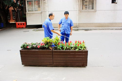为进一步提高园区的后勤服务水平,后勤公司在园区北大门沿线安置了花箱,将机动车道与人行道隔开,既美化了园区的工作及生活环境,又确保行人的安全,特别是磨子桥小学上下学的小学生安全;同时也解决了车辆乱停乱放的问题。
