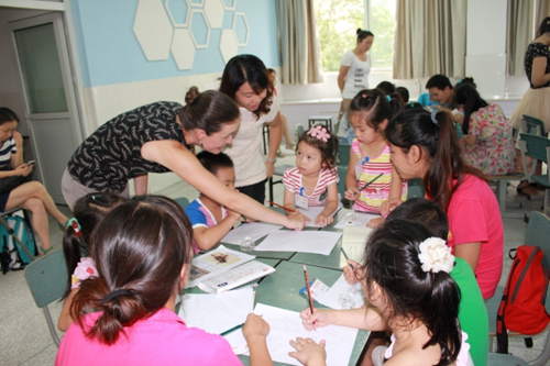 8月5日,科分院实验幼儿园部分师生与美国孩子一起参加了2013武侯区中美师生共研式科学课程实践活动。来自美国旧金山大学教育学家斯蒂芬妮·西斯克-希尔顿博士和参培师生共研夏威夷蟋蟀的进化论。