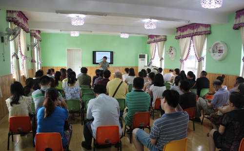 这次活动分为两个部分:第一个部分内容是孩子们在老师们的带领下参与了早操活动、手工活动、英语活动、吃点心和户外游戏,孩子们体验到幼儿园上幼儿园是好玩的、快乐的,为孩子们入园的安全感建立奠定了基础;第二个内容是全园新生家长会,在家长会上,幼儿园钟园长、何园长向家长们讲解了幼儿园的发展历程、办园理念、传染病防治,以及家长们最关心的如何帮助宝宝度过“分离焦虑期”等问题的处置策略,让家长们更加信任幼儿园,增进和幼儿园互动的情感。