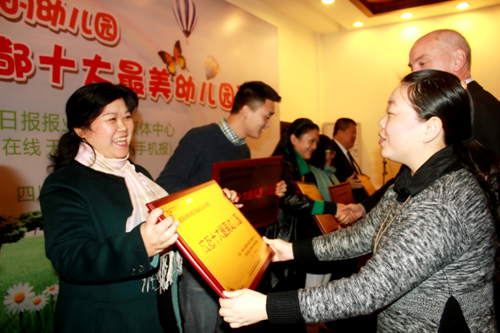 11月20日,“成都十大最美幼儿园”授牌仪式在大邑举行。四川报业集团和省市教育部门的领导们以及荣获“成都十大最美幼儿园”的幼儿园园长们参加授牌仪式。