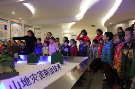 在山地所科技展馆里,孩子们观看了我国地形及山地灾害分布的沙盘模型,认识了我国泥石流灾害的主要区域;孩子们还很快的找到了成都的位置,了解了四川盆地和成都平原的地理特点。在东山泥石流观测站模型时,解说员给小朋友们丰富了泥石流产生的成因、特点及危害等,并告诉小朋友们在地质灾害来临时,如何逃生的方法,平时要避免到危险的地方去玩耍。在科技管里,孩子们还认识了科学家们设计的各种各样的防泥石流的大坝,有了这些牢固的大坝有效地减弱泥石流对大自然和人类造成的破坏程度。