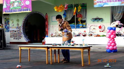 12月26日,科分院实验幼儿园第四届科技节开幕式在幼儿园大操场隆重举行。300余名2-6岁的孩子迈着整齐的步伐伴随着“探索奥秘 玩专科学”的主题口令进行了入场式表演、机器人模仿操表演和走秀表演,紧接着是领导们给孩子们的科学小制作颁奖,然后是机器人、汽车、飞机、潜艇等航模表演,最后在《爸爸 你要去哪儿》的萨克斯现场吹奏音乐声,小朋友们用纸飞机放飞自己的科技梦想。