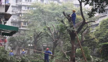 近日,后勤公司对园区内5、13、14、28栋旁的大树进行了修枝。不仅美化了园区的植物景观,还让树下的花草采光更好,蓬勃生长。
