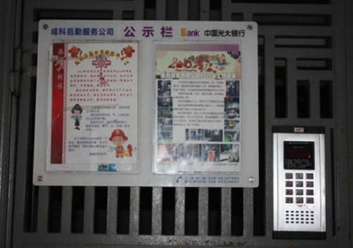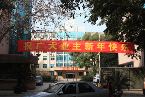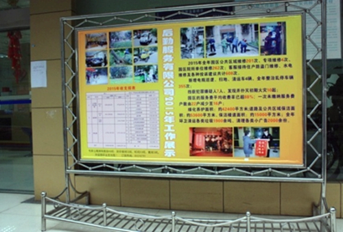 近日,成科后勤公司在园区185个单元门及服务大厅前张贴宣传栏展示2015年度工作和收支情况;在园区南北大门、花园处悬挂横幅;打造光彩工程增加节日氛围。
