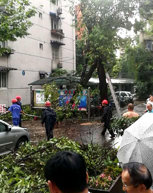 7月13日下午迎来一场超强暴风雨,经过暴风雨的肆虐,科分院园区七棵树干被吹断。后勤公司立即启动应急预案,安排专人抢修清理,于当日天傍晚将倒伏树枝进行处理,保障道路畅通和行人安全。