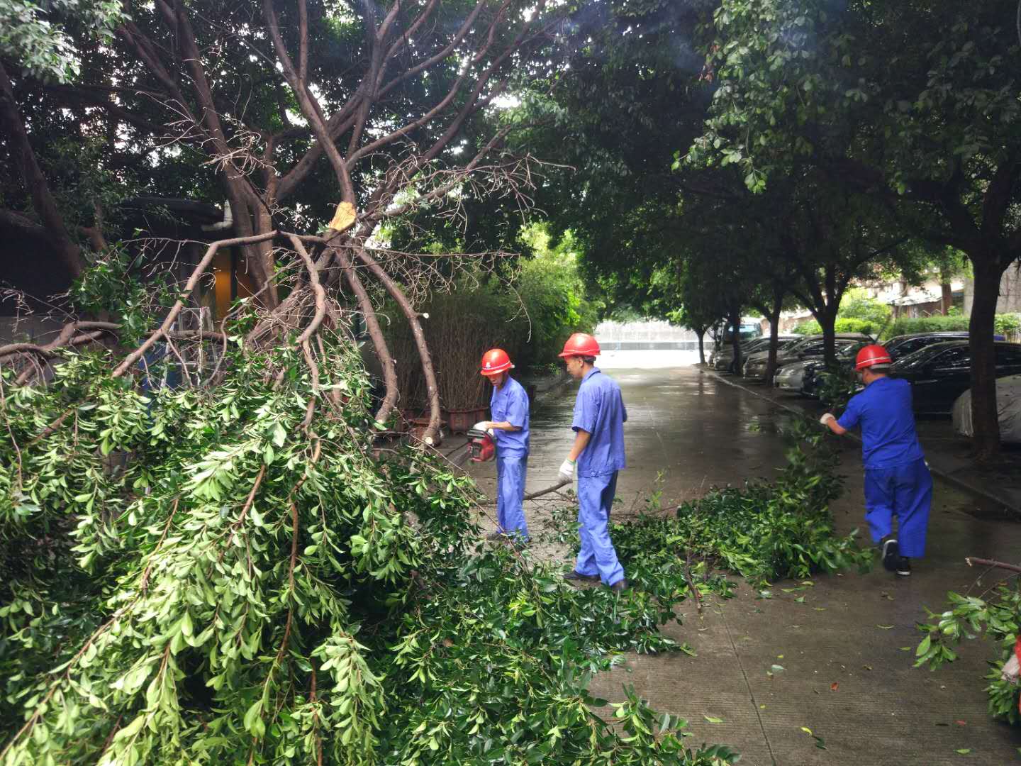 今年在雨季期间处置倒伏树木3次,确保园区内道路交通安全与顺畅。
