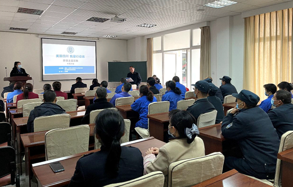 3月4日,成科后勤公司邀请成都人人安康社会工作发展中心宣传科长王容娜作垃圾分类专题培训。