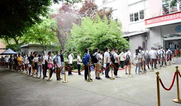 6月11日,中国科学院大学(以下简称“国科大”)2021年在川本科招生综合评价面试在成都分院举行。来自四川省的374名考生参加面试。综合评价是指综合学生的高考成绩、专家面试、高中学业水平考试三个方面的成绩来录取考生的选拔方式,其中面试成绩占总成绩的30%,高考成绩占60%,高中学业水平考试成绩占10%。