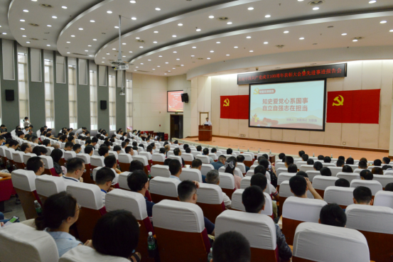 为庆祝中国共产党成立100周年,6月29日,光电所在学术报告厅举办庆祝建党100周年表彰大会暨先进事迹报告会。光电所党委中心组成员、全所党务干部、年轻干部理论学习小组成员、党员代表参加会议。会议由党委副书记、纪委书记谭多财主持。