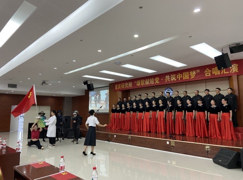7月28日,重庆研究院举办“颂歌献给党·共筑中国梦”合唱汇报演出。院领导韦方强、张长城、陈永波、刘鸿,及全院职工师生300余人参加活动。