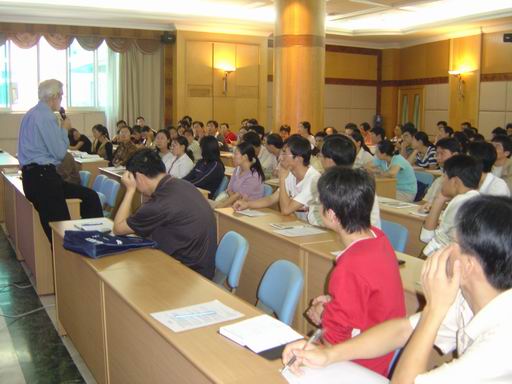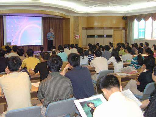 9月23日上午,加拿大籍教育专家ROGER先生做了西方文化系列讲座第一讲,随着ROGER先生主讲的“加拿大文化与生活”(CANADA—LIFE AND CULTURE)的开始,拉开了由成都教育基地举办的2004学年西方文化背景系列讲座的序幕。ROGER先生精彩的报告吸引了广大研究生,180名博士、硕士研究生济济一堂。