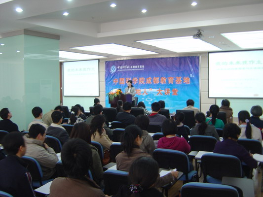 针对当前研究生存在的不同程度心理问题,3月14日,成都教育基地特邀中国科学技术大学心理教育中心主任、全国大学生心理咨询与教育专业委员会常委、中国科学院研究生院心理健康教育特聘专家、安徽省学生心理研究会会长孔燕教授,为成都地区研究生人文教育系列讲座作2008年首场演讲。