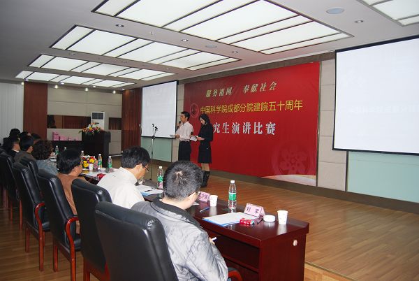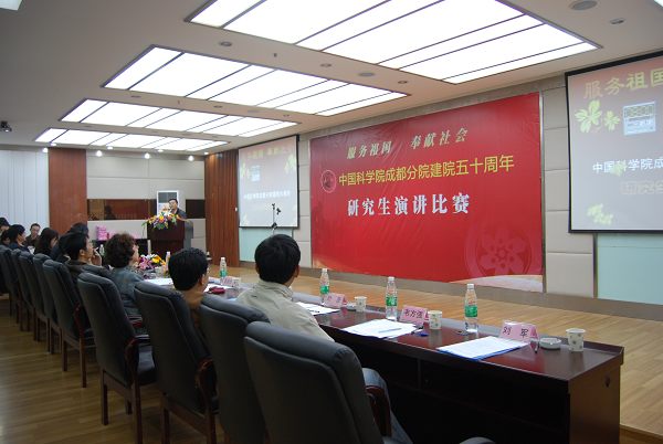为庆祝中科院成都分院建院五十周年华诞,10月28日下午,成都教育基地举行了主题为“服务祖国、奉献社会”迎院庆研究生演讲比赛。中科院成都分院院长、成都教育基地管委会主任彭宇行,党组书记彭玉水,副院长袁家虎,副院长、党组副书记赵永涛,中科院光电所副所长范天泉,中科院成都生物所副所长叶彦,中科院成都有机所副所长熊成东,中科院成都计算所总工程师钟勇,国科图成都分馆馆长方曙,中科院成都山地所研究员韦方强等出席了演讲比赛。