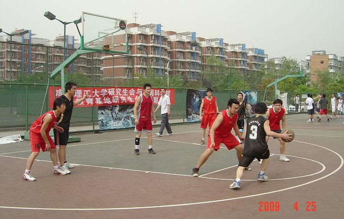 4月25日下午,中科院成都教育基地研究生篮球队与成都理工大学研究生篮球队举行了首场比赛。活动月中,中科院成都教育基地研究生还将与四川大学、四川音乐学院研究生举行篮球比赛。