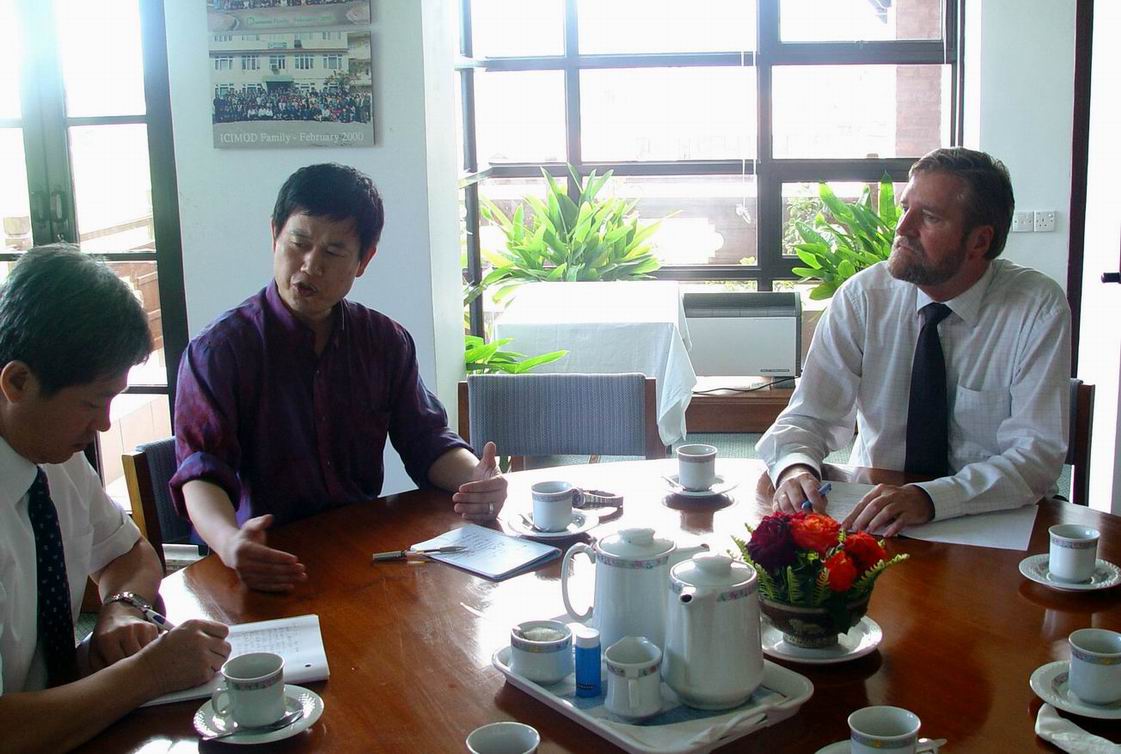正式会议结束后,邓伟所长和胡平华主任与ICIMOD的主任、副主任以及有关人员专门就中国委员会以及成都山地所与国际山地综合发展中心的下一步合作议题进行了专门会谈,在进一步扩大中国在国际山地发展中心的作用、喜玛拉雅地区项目合作、信息交换、人才培养及技术培训等方面达成了共识,并对具体项目初步达成合作意向。