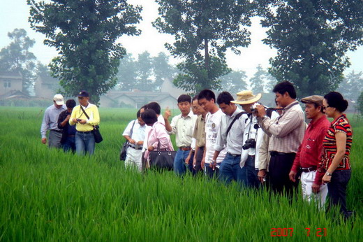 邱总裁一行泰国外宾在该所农业中心研究人员的陪同下参观了农业中心实验室,并到水稻种植基地进行了田间考察,交流了水稻、小麦育种和栽培经验。