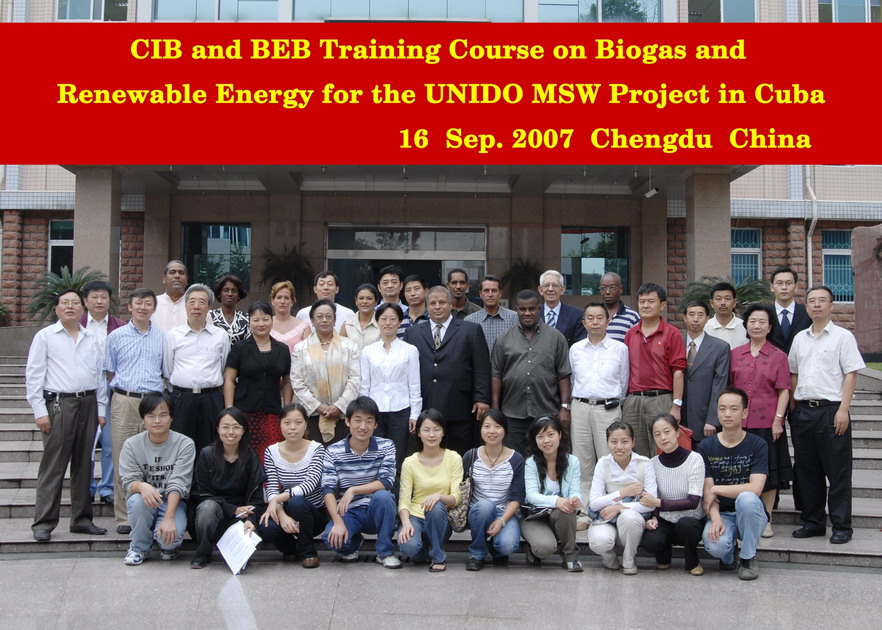 该培训班是为联合国工业发展组织(UNIDO)援助古巴的处理哈瓦那市20-30万户家庭的有机垃圾沼气发电工程项目而开办的。该工程由UNIDO 出资,德国BEB公司承包,并与成都生物所合作。由成都生物所承担该项目在华培训事宜以及参与BEB组织在古巴的培训工作、工艺设计以及该工程的启动与调试研究等工作。