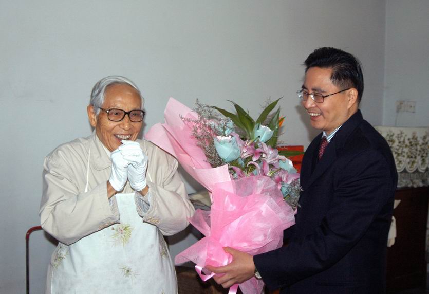 在李正武院士88岁生日之际,彭宇行院长受科学院数理学部委托,到家中看望并问候李先生,祝他生日快乐,健康长寿。