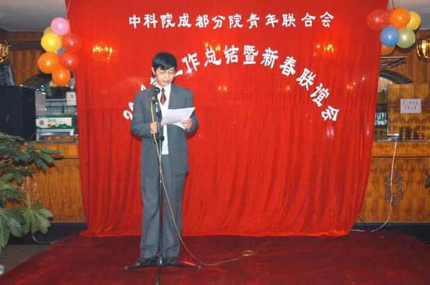 成都分院院长、院青联副主席、省青联副主席彭宇行在致辞中说:分院青联在2004年紧紧围绕知识创新试点工作及分院领导班子提出的发展新思路,发挥青联的优势积极开展工作,在青年人才队伍建设、丰富创新文化内涵、服务青年成长成才等方面做出了有显示度的成绩。他希望分院青联在新的一年继续贯彻服务青年、服务大局、服务社会的工作方针,进一步拓宽工作面,整合各方面资源,为青年人建功立业搭建广阔舞台。