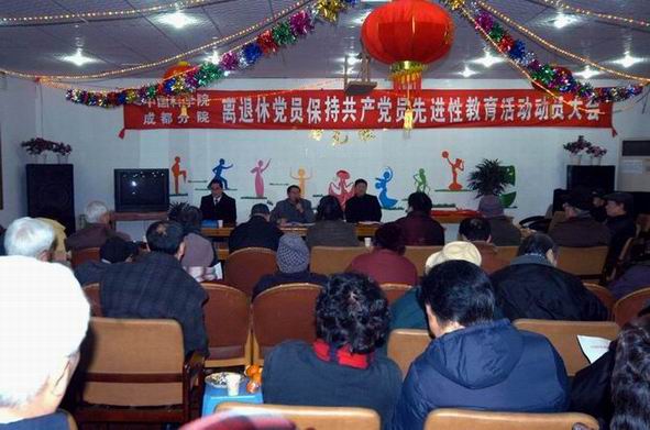 分院党组书记、先教领导小组组长汪光泽同志在会上通报了成都分院在职党员先教活动的进展情况,并对分院离退休党员的先教活动提出了安排意见。