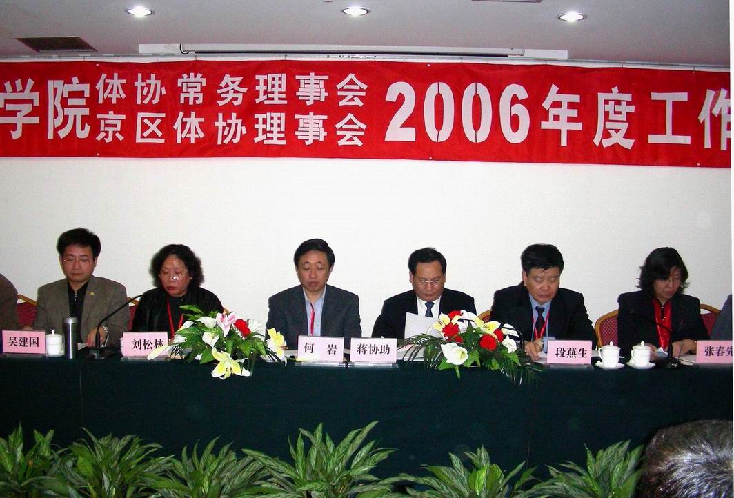 院体协、京区体协的理事和部分研究所代表共94人参加了会议,院党组成员、副秘书长何岩同志到会并作了重要讲话。会议由院体协副主席、院办公厅主任蒋协助主持,院体协副主席、京区党委副书记刘松林做了2005年体协工作总结;院体协副秘书长门东山对2005年经费使用情况、2006年体协工作安排做了说明,并传达了全国体育局长会议精神;院体协副主席、院综合计划局局长助理张春先宣读了《关于授予中国科学院2005年全民健身周活动优秀组织奖、先进单位称号的决定》;大会向获奖单位和个人分别颁发了奖牌和奖章。