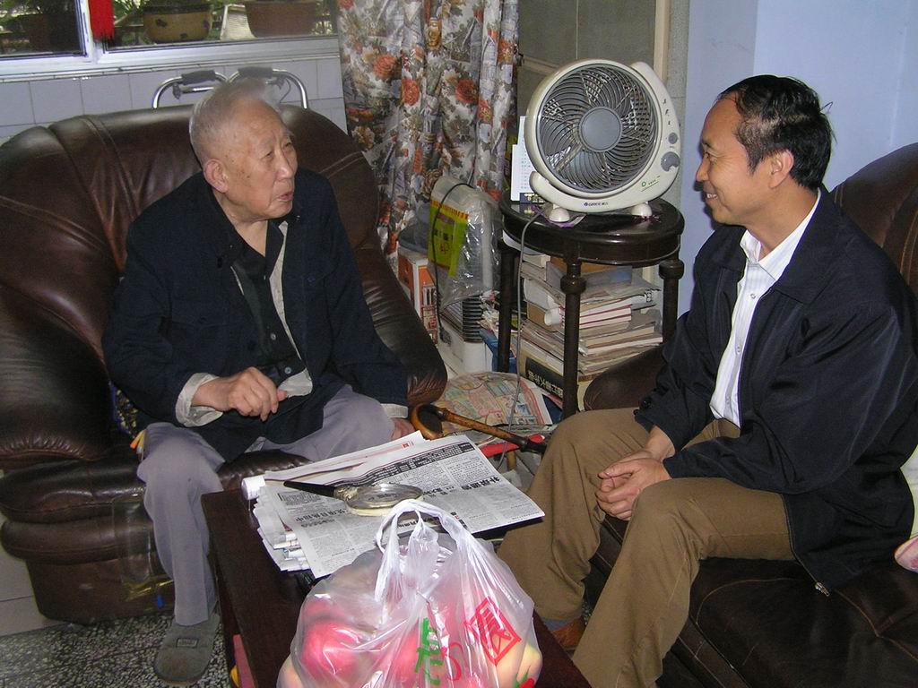 在老红军、原分院副秘书长余洁同志和老红军、原成都山地所党委副书记姚国仕同志的家里,彭玉水书记满怀深情地说,今年是红军长征胜利70周年,我们代表分院党组来看望你,你们都是中国革命的有功之臣,为新中国的建立和社会主义建设立下了汗马功劳,对于你们的功绩,党和人民不会忘记,党和人民感谢你们。正是因为有了像你们这样的老红军、老干部所做的贡献,为成都分院事业的发展打下了良好基础,才能有分院今天的成绩,我代表成都分院全体职工感谢你们!