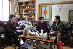 每到一处,袁家虎、彭丽玲都和他们亲切交谈,仔细询问近期的生活情况、身体状况。当了解到余洁因腿疾严重在治疗时,袁家虎要求离退休办公室工作人员要加强与医院的沟通,及时掌握病情,了解治疗情况。袁家虎还简要介绍了分院近期工作,感谢他们对分院工作的理解和支持,表示分院会继续加强离退休工作,尽心尽力照顾好老同志。