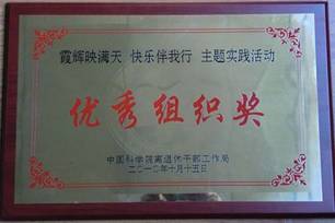 在中国科学院 “霞辉映满天、快乐伴我行”主题实践活动中,成都分院成效显著获得院“霞辉映满天快乐伴我行”主题实践活动优秀组织奖。