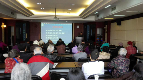 随后,主讲嘉宾余希杰教授以通俗易懂的方式,向老同志讲解了骨质疏松的定义及危害、自我判断与诊断、如何预防、治疗问题以及误区等五个方面的医学知识,并与大家进行现场互动。讲座后,余教授还提供骨质疏松测试仪免费为到场老同志进行筛查检测和诊断,得到了老同志的一致好评。