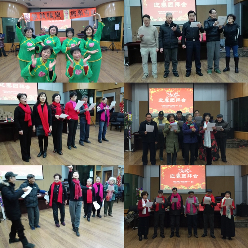 团拜会上,离退休老同志精心准备了舞蹈、合唱、独唱、葫芦丝演奏、诗朗诵等节目,中间穿插激动人心的抽奖活动,温馨美好的挂心愿树活动。开场的第一支舞蹈《春天在哪里》,为团拜会带来了新春的气息。合唱节目《龙的传人》《团结就是力量》《再唱山歌给党听》《远飞的大雁》《党啊,亲爱的妈妈》《小草》《感恩》《敖包相会》等,将老同志这一年来学习的歌曲进行了汇报演出。为了鼓励大家认真学习,合唱节目还进行了评奖活动。独具特色的葫芦丝《梨花颂》歌舞表演,给大家美的享受。充满异域风情的《斗牛士》舞,让大家耳目一新。退休同志还表演了《鼓浪屿之歌》、《我的太阳》等独唱节目。在职人员也献唱了最近大热的歌曲《绒花》。