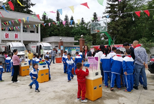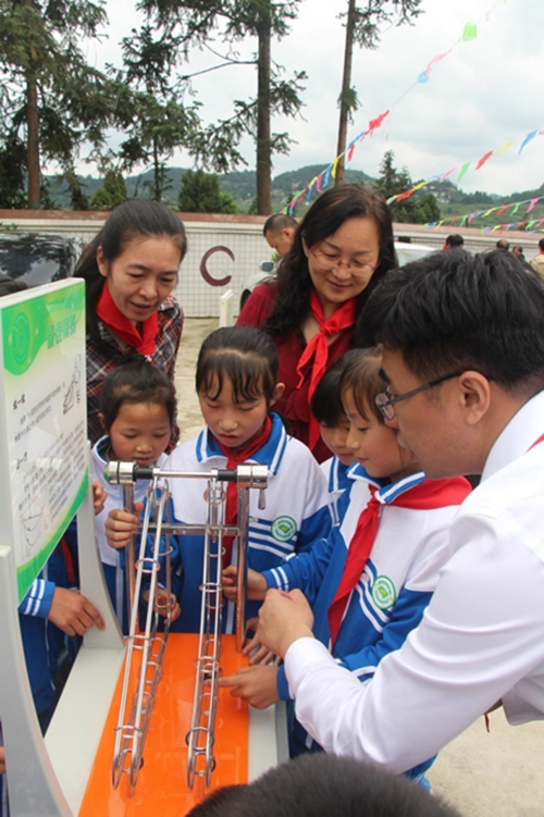 四川省侨联常委、中科院成都文献情报中心副主任、致公党四川省直四支部主委杨志萍受四川省副省长、致公党省委主委杨兴平的委托向孩子们送去六一的特别祝福和对老师们的谢意。她希望孩子们通过系列科普实践活动,感受科学的魅力,播下科学的种子,在体验中学习,在探究中成长,遇见未来的样子。四川省科学技术协会将两辆科普大篷车开进校园,为学生们带来了集科学性、知识性、趣味性于一体的“科普大餐”。活动还开展了“未来城市”搭建竞赛,并分别向两个小学共135名学生赠送了量身定制的校服、文具和体育用品,向学校赠送了科普资源大礼包,并邀请优秀同学参加夏令营。