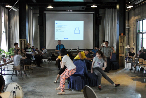 除了室外采摘蓝莓,本次活动还组织了室内“抢凳子”游戏。游戏由罗晓梅主持,文安邦当裁判。游戏共进行了五轮,大家既拼搏争抢又相互礼让,最后决出了10名优胜者。