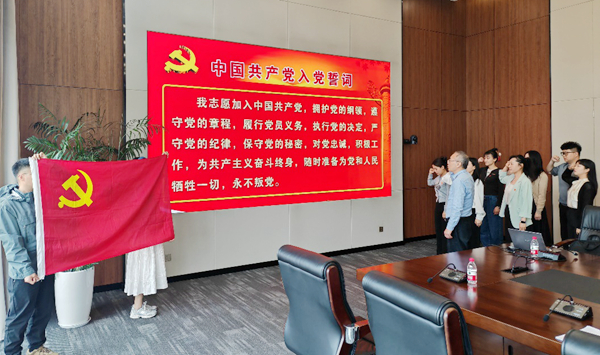 会后,支部组织上半年入党的同志集体过政治生日。刘庆带领大家重温入党誓词,刘琴代表支委向党员赠送了生日贺卡。