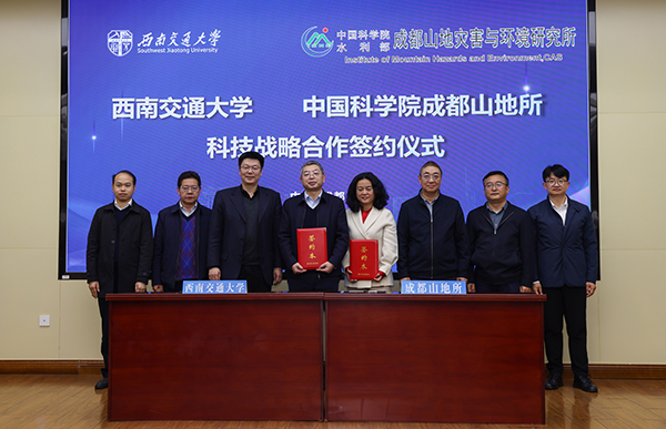 11月10日,成都山地所与西南交通大学科技战略合作签约仪式在西南交通大学犀浦校区举行。西南交通大学校长闫学东,党委常委、副校长王平和成都山地所所长康世昌、纪委书记周鹏浩出席仪式。签约仪式由王平主持。