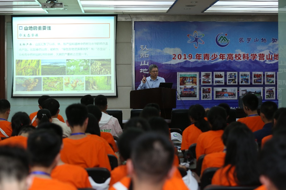 张宁代表成都山地所对同学们的到来表示热烈欢迎,并鼓励同学们主动参与、积极探索、勇于实践、大胆创新,用心体验山地科学研究的魅力和科技创新的力量,深入了解和体验山地科学研究的全过程,积极培养科学的思维和方法,不断增强创新意识,进一步提升探索实践能力。此次山地专题营还特别邀请了中科院成都山地所研究员、国际欧亚科学院院士邓伟为同学们作了题为“山地—神奇的空间、重要的国土”的主题报告。