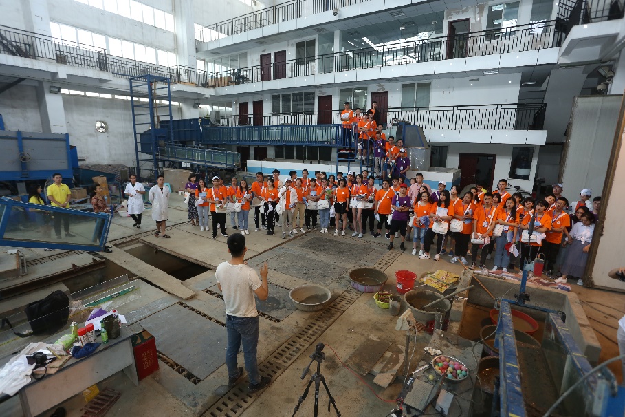 随后,营员们参观了综合测试与模拟实验中心和成都山地所科技展馆。在泥石流模拟实验大厅,代志强老师给同学们讲解了泥石流的发生原理和过程,并带领同学们观摩了正在进行的科学实验。同学们还同实验大厅的老师和研究生们进行了交流。在成都山地所科技展馆,通过马雅阁老师的介绍,同学们了解了中国地形及山地灾害的分布、成都山地所发展史、山地科学主要研究成果以及科技平台建设等内容。