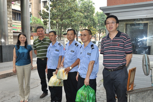 陈锋说:“大家在如此炎热的气温下,仍然坚守在工作岗位,辛勤劳作,分院的园区环境建设你们功不可没。”同时嘱咐大家要多喝水,做好防暑降温措施,保护好身体健康,安全度夏。