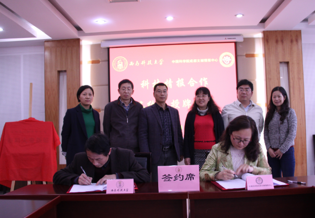 3月26日,中国科学院成都文献情报中心副主任杨志萍与西南科技大学党委常委、副校级调研员杨世源代表各自单位共同签署《中国科学院成都文献情报中心与西南科技大学科技查新服务合作协议》和《西南科技大学与中国科学院成都文献情报中心馆际互借/原文传递合作协议》。仪式由西南科技大学合作发展处处长朱目成主持。