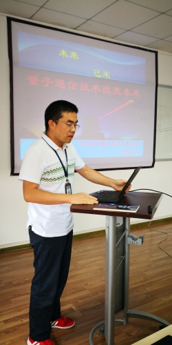 按照拟定的实习计划,研究生部向银辉老师简洁的欢迎致辞后,随即介绍了我所具有重大显示度的科研工作和研究生教育概况。八室张兰强博士作了题为“太阳高分辨力层析成像与空间天气预报”的科普报告,一室王强研究员作了“星地量子通信及光学地面站”报告。报告在同学中引起热烈反响,加深了对光电所的认识和仰慕。同学们最后在吴永前博士带领下参观了先进光学制造中心,初步了解我所在先进光学制造与检测技术方面的重要进展。